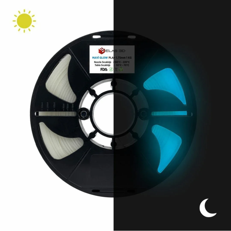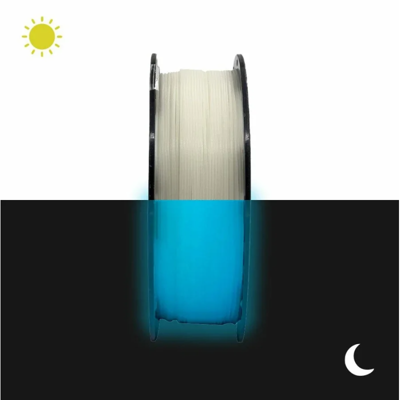 • Glow-in-the-Dark Yetenek: Bu filament karanlıkta parlar ve projelerinizi gerçeküstü bir hava katar. Kendi kendine parlama özelliği, ışık koşulları düşük olduğunda özellikle etkileyicidir.